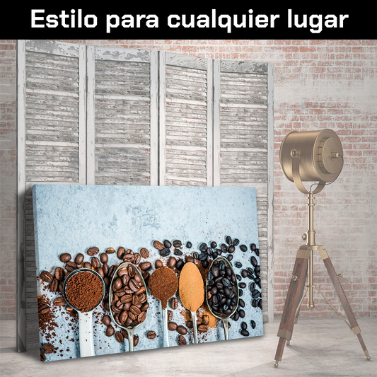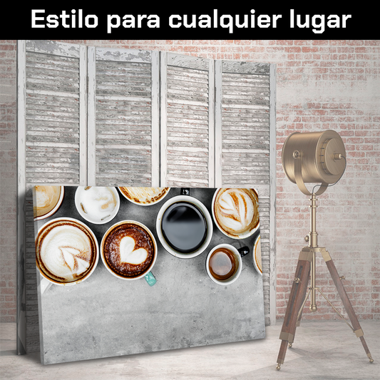 Todos los cuadros de esta colección son personalizables en formato y tamaño, asegurando que encajen perfectamente en tu decoración, ya sea una cocina, sala o cafetería.