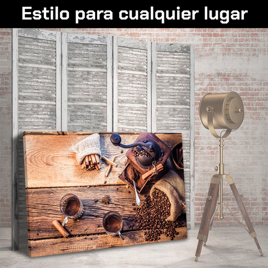 Los cuadros de café presentan estilos variados que van desde lo rústico y vintage hasta lo moderno, con colores cálidos que evocan la tranquilidad y el disfrute de una taza de café.