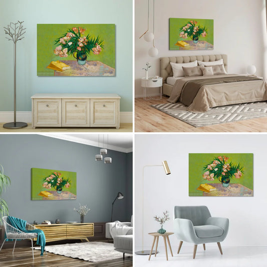 Adelfas, pintado en 1888, es una representación vibrante de flores en un entorno doméstico. Con su uso expresivo del color y la composición, Van Gogh captura la vitalidad y el encanto de estas plantas, mostrando su interés por la naturaleza y la vida cotidiana.
