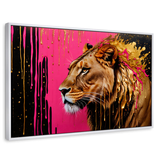 Dripping explora temas variados como la majestuosidad de los leones, la serenidad de Buda y elementos de la naturaleza, con una paleta de colores que mezcla tonos metálicos como el dorado y plateado con colores intensos como el azul y el rosa. Esta combinación crea una estética moderna y lujosa que destaca en cualquier decoración.