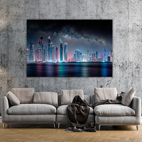Dubai City Under the Milky Way