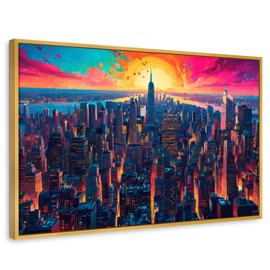 La colección Splash explora temas modernos con una paleta de colores intensos y contrastantes, como neones, azules eléctricos, rosas y naranjas vibrantes. Cada cuadro utiliza combinaciones llamativas que añaden energía y movimiento a la obra, creando un impacto visual ideal para decoraciones contemporáneas y atrevidas.