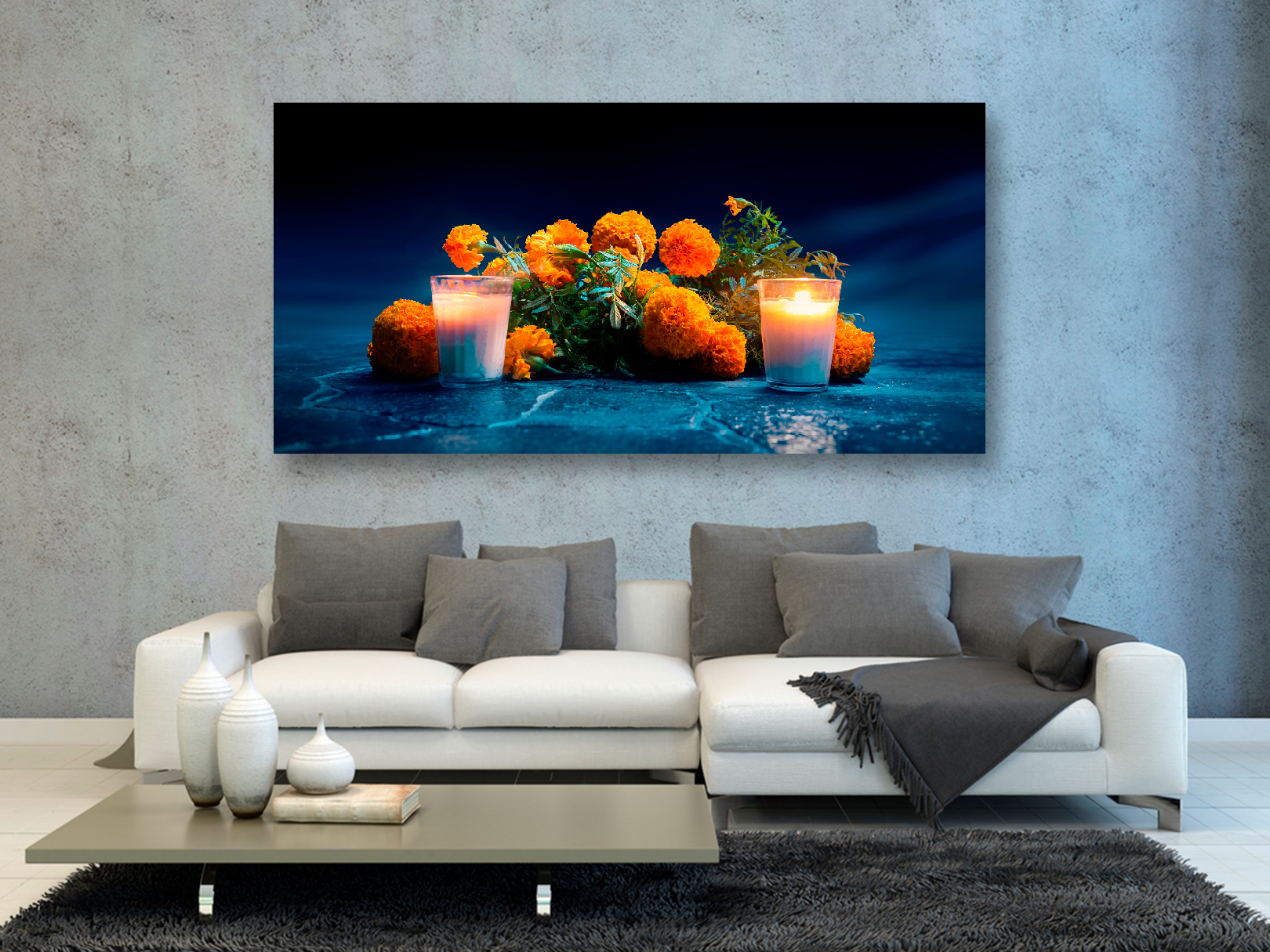 Cempasúchil con velas