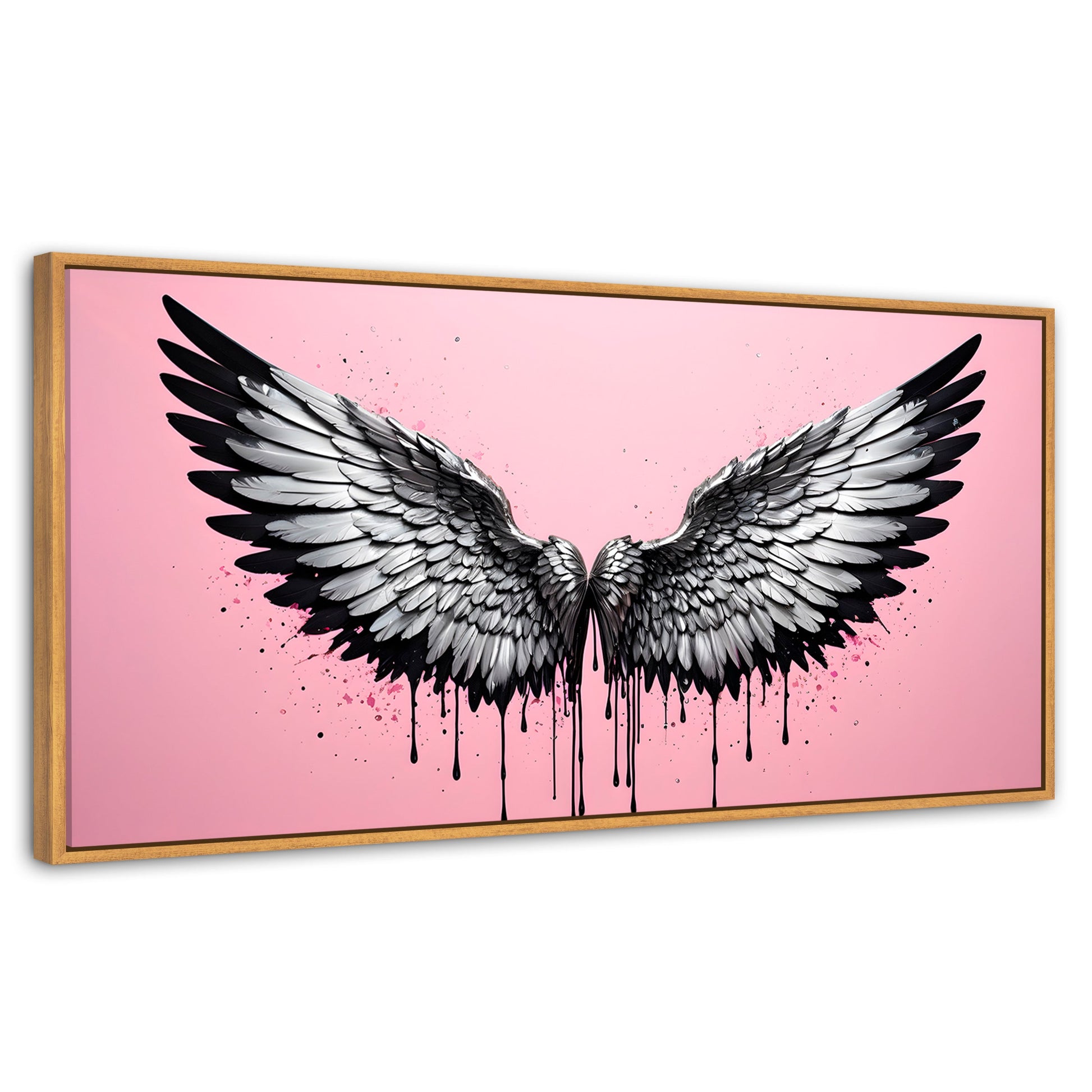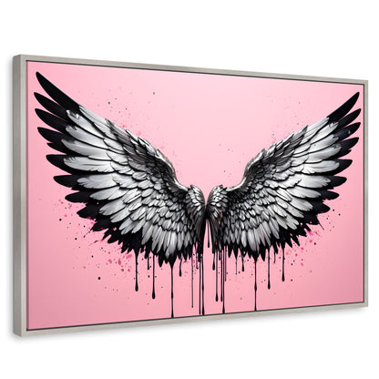 El contraste entre las alas en tonos oscuros y el fondo rosa genera un efecto visual llamativo y armónico. El diseño combina elegancia con un estilo audaz, ideal para quienes buscan arte con carácter.