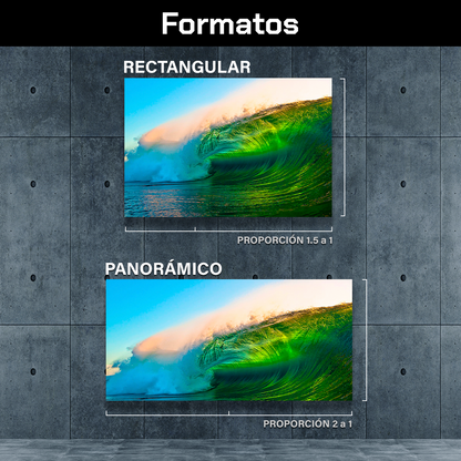Este cuadro está disponible en diferentes formatos y medidas para ajustarse a tu espacio. También puedes personalizarlo con marcos flotantes en tonos madera, negro, dorado, plata o blanco. En Canvas Revolution te brindamos asesoría personalizada para elegir la mejor opción.