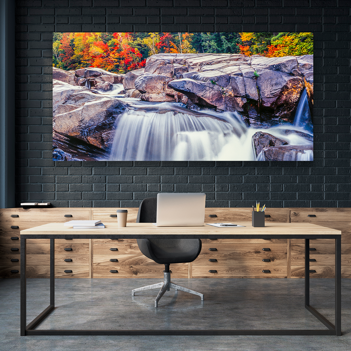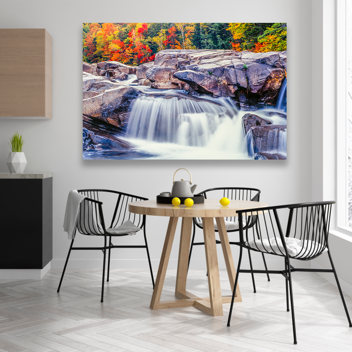 Otoño Río Swift captura la majestuosidad del agua fluyendo entre rocas enmarcada por los tonos cálidos del otoño. Este cuadro decorativo transmite serenidad y vitalidad, creando una atmósfera acogedora y natural en cualquier espacio de tu hogar u oficina.